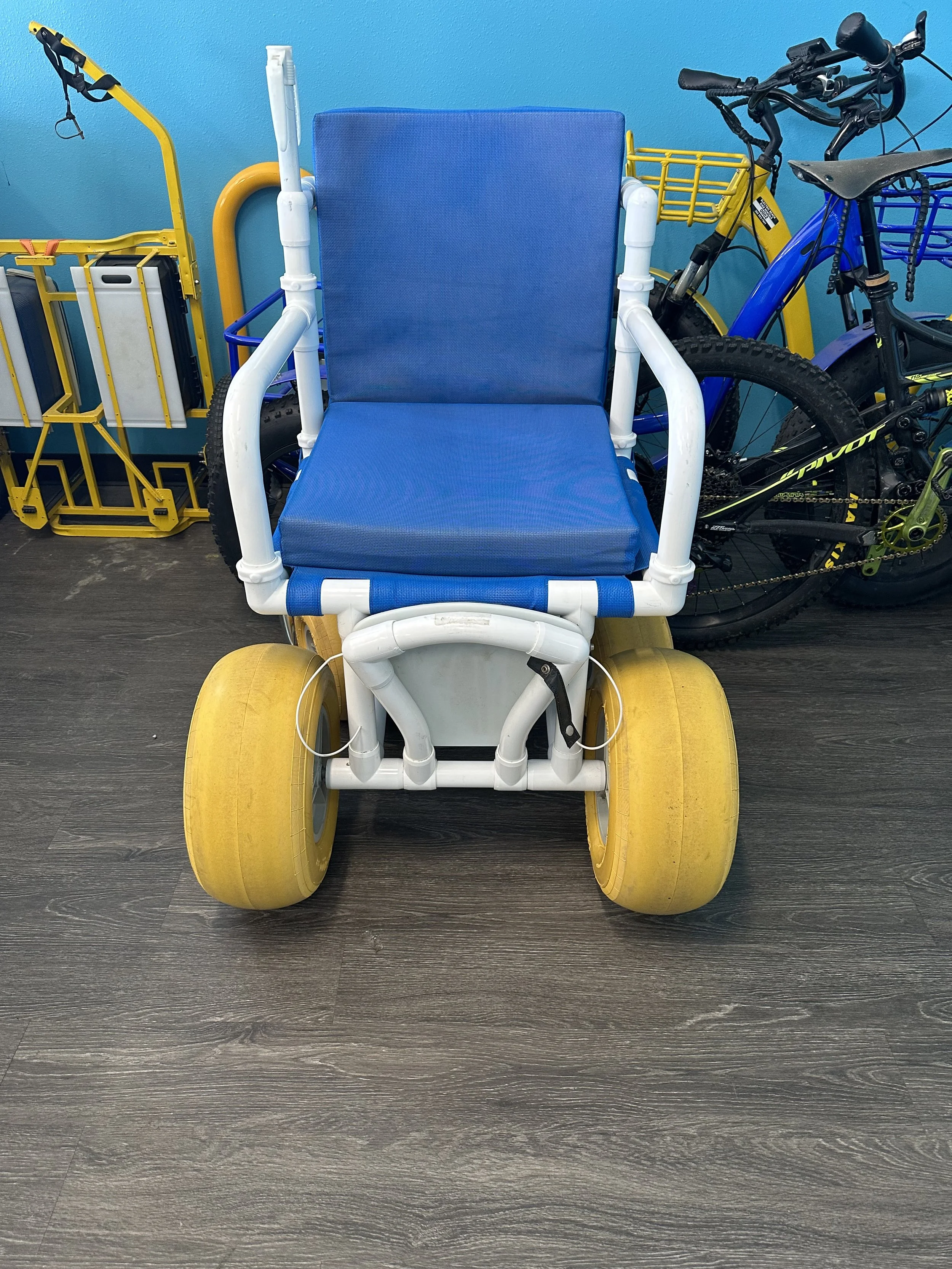 Our beach wheelchair is perfect for someone who needs a wheelchair it does not have a motor, so it does have to be pushed. if you’d like to reserve it for an hour or two give us a call at (360)-593-7441